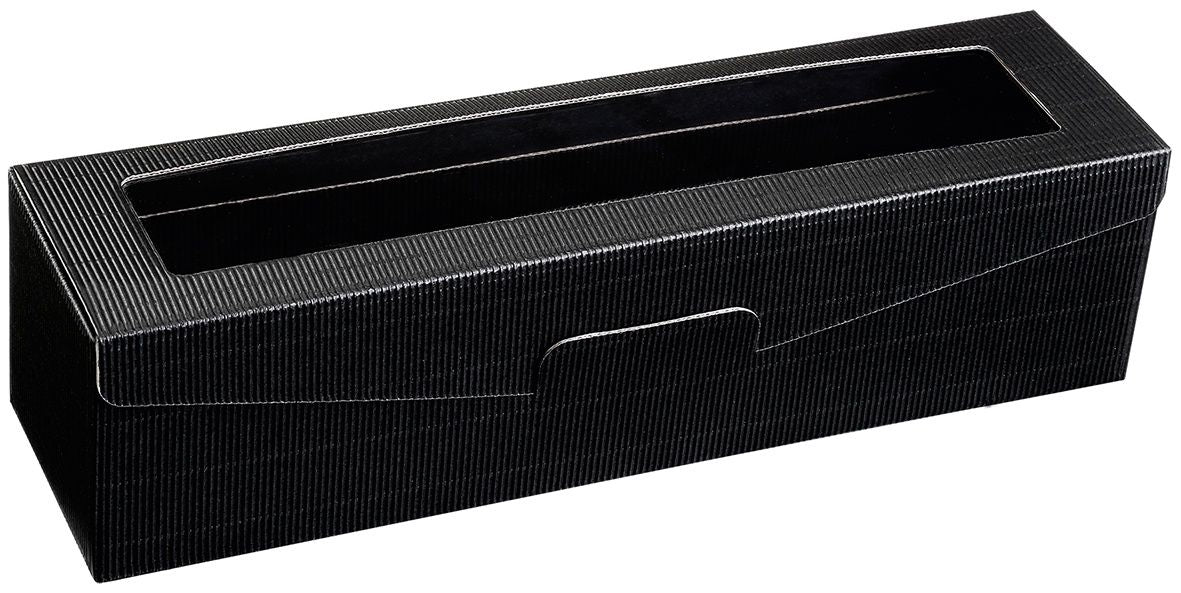 Dieser hochwertige Präsentkarton in edler schwarzer offener Welle ist die perfekte Verpackung für Wein, Korn, Liköre oder feine Spezialitäten aus dem Münsterland Dorf Erle. Das elegante Passepartout-Sichtfenster lässt bereits erahnen, welch edler Tropfen sich im Inneren verbirgt – ideal für Geschenke aus unserer regionalen Genusswelt.